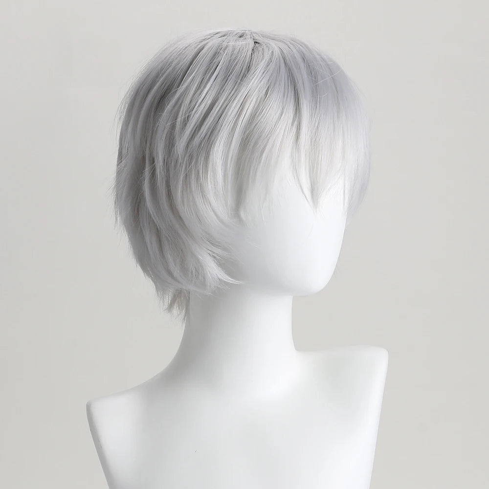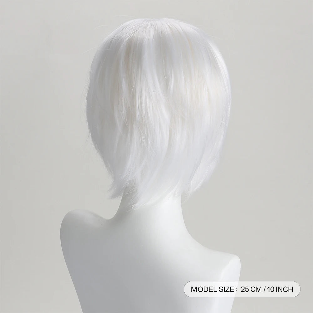 10 Inch Synthetic Wigs Pure White Short Curly Wig Anime Hatter for Cosplay Halloween Costume Party