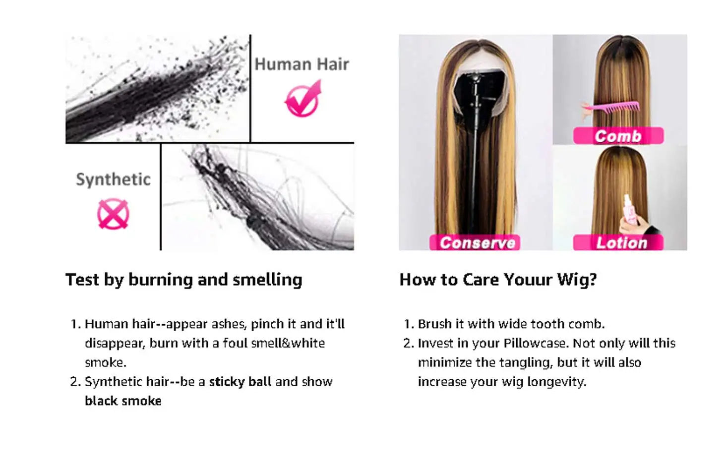 Hair material: 100% human hair wig.