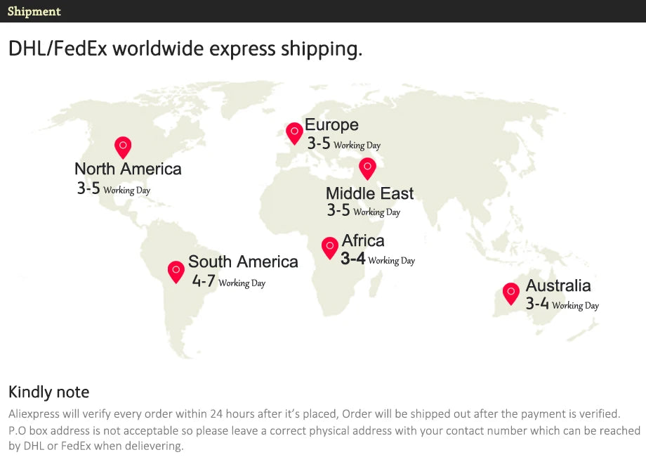 Shipping Time: 3-5 Days worldwide Free Shipping
