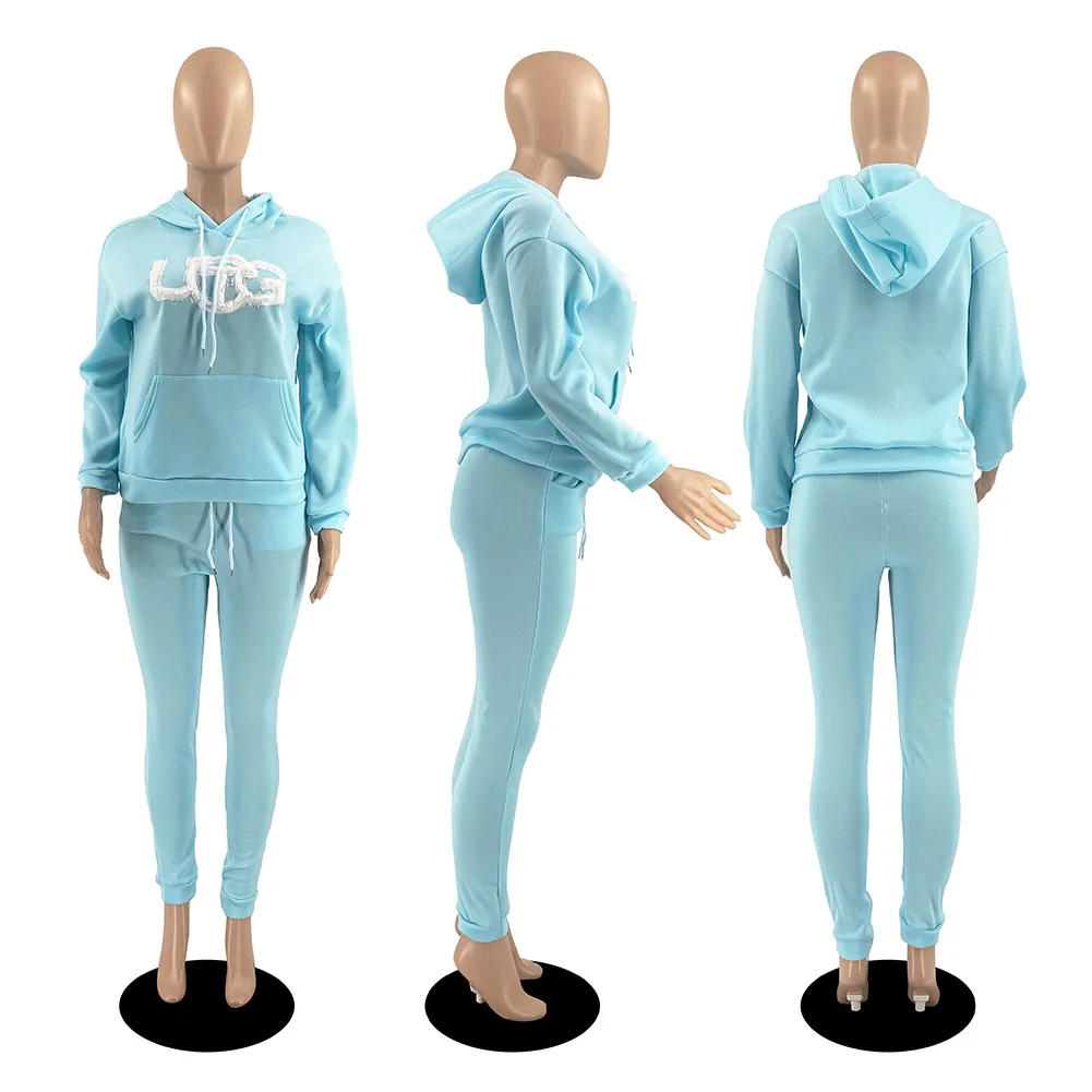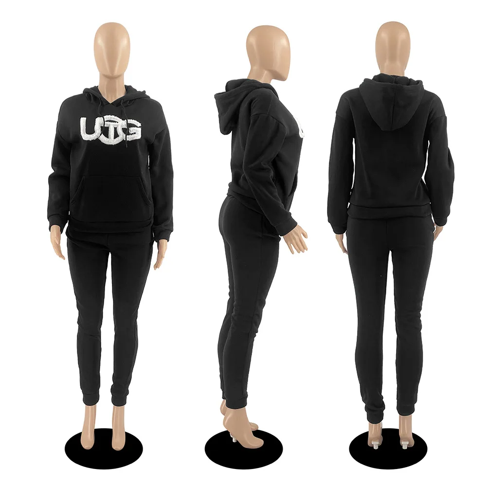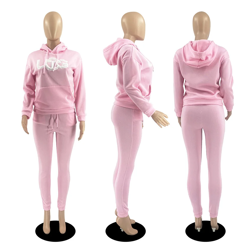D88140 Custom Tracksuits For Women Embroidered Plush Winter Sweater Hooded Two Piece Set Women Clothing Ladies Jogging Suits