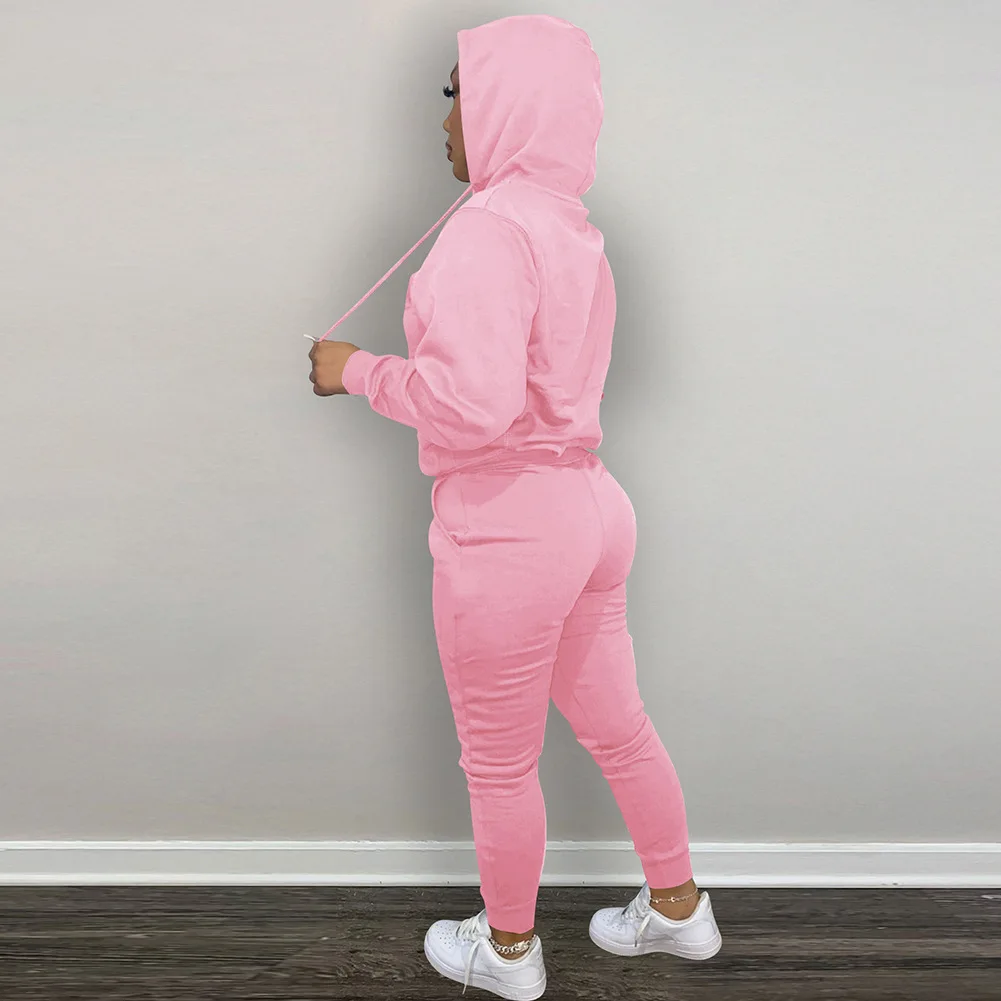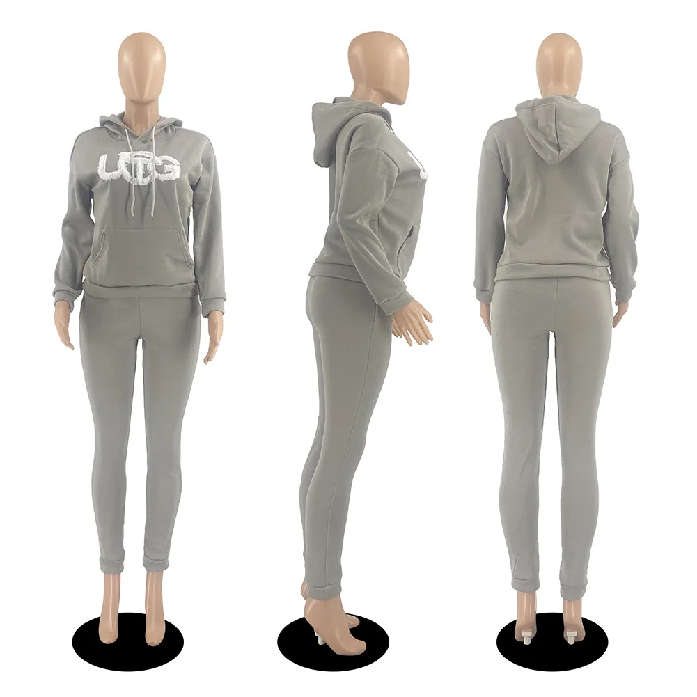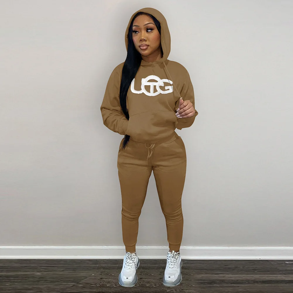 D88140 Custom Tracksuits for Women Embroidered Plush Winter Sweater Hooded Two Piece Set Women Clothing Ladies Jogging Suits