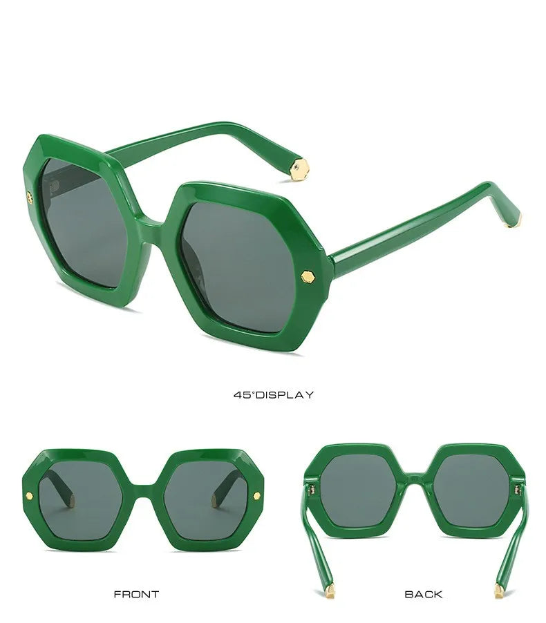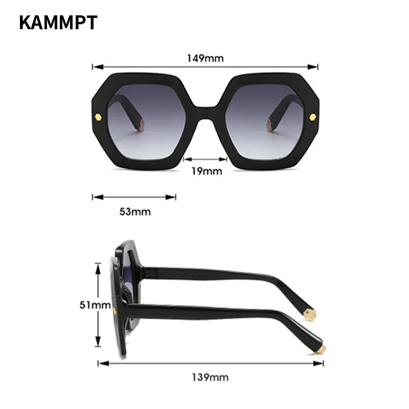 KAMMPT Oversized Men Sunglasses Fashion Hexagon Frame Gradient Shades Eyewear Women 2023 Trendy Ins Popular Brand Sun Glasses