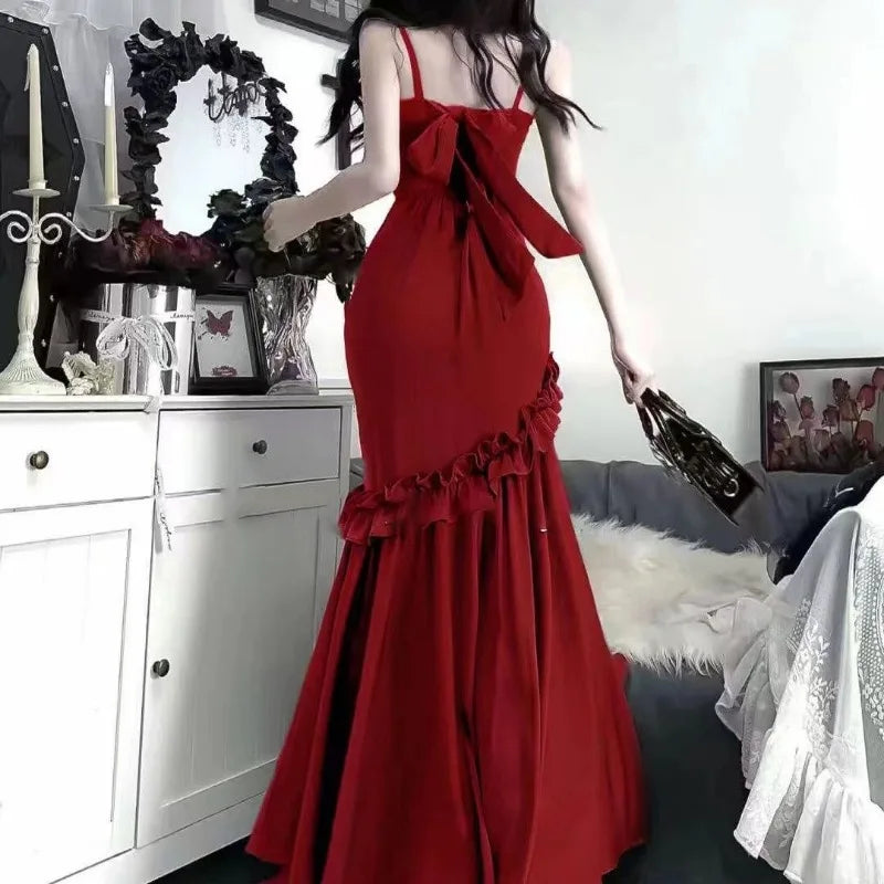 Maxi Dress for Women Summer Tunic Temperament Robe Femme 2025 Vestidos De Mujer Ruffles Bandage Bow Backless Bodycon Dresses