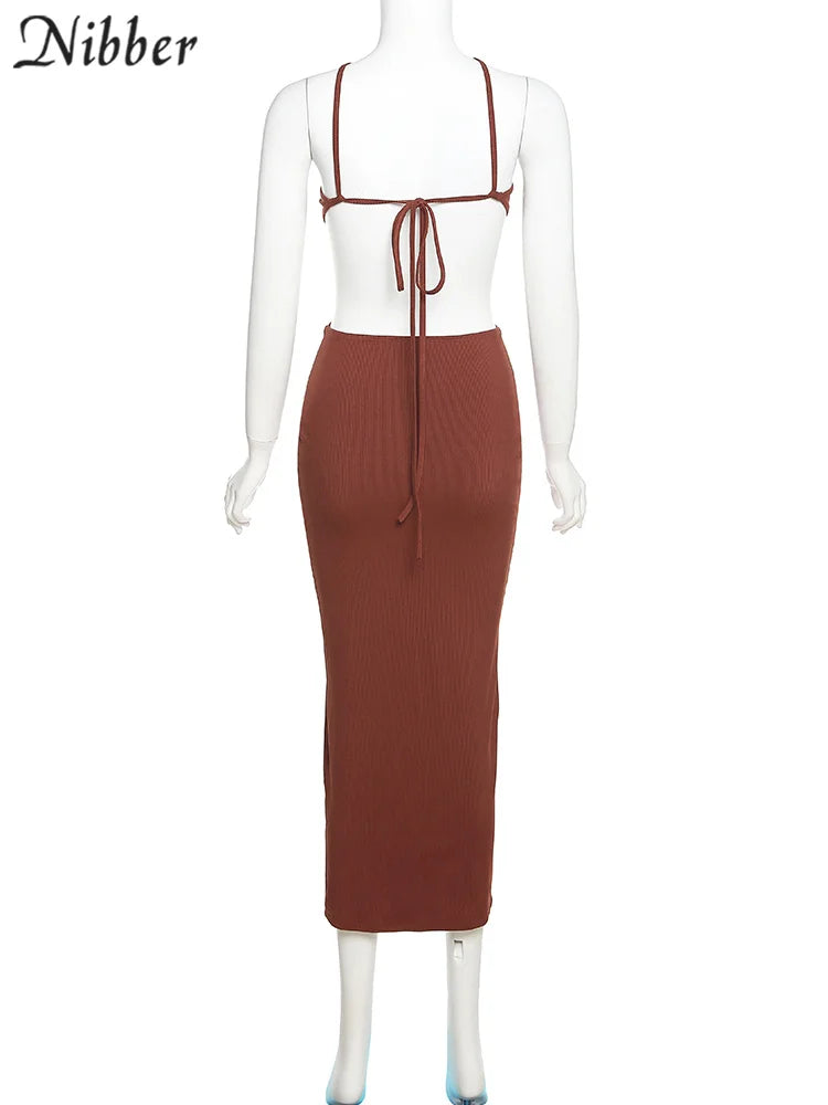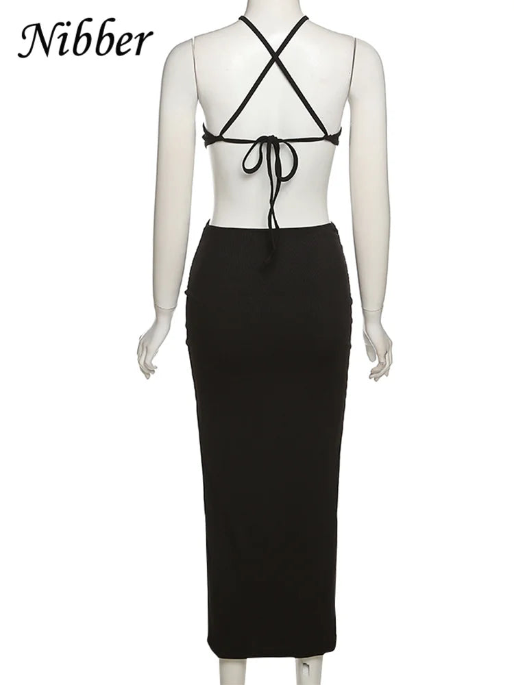 Nibber Women's Knitted Dress Halter Neck Sexy Sleeveless Dress