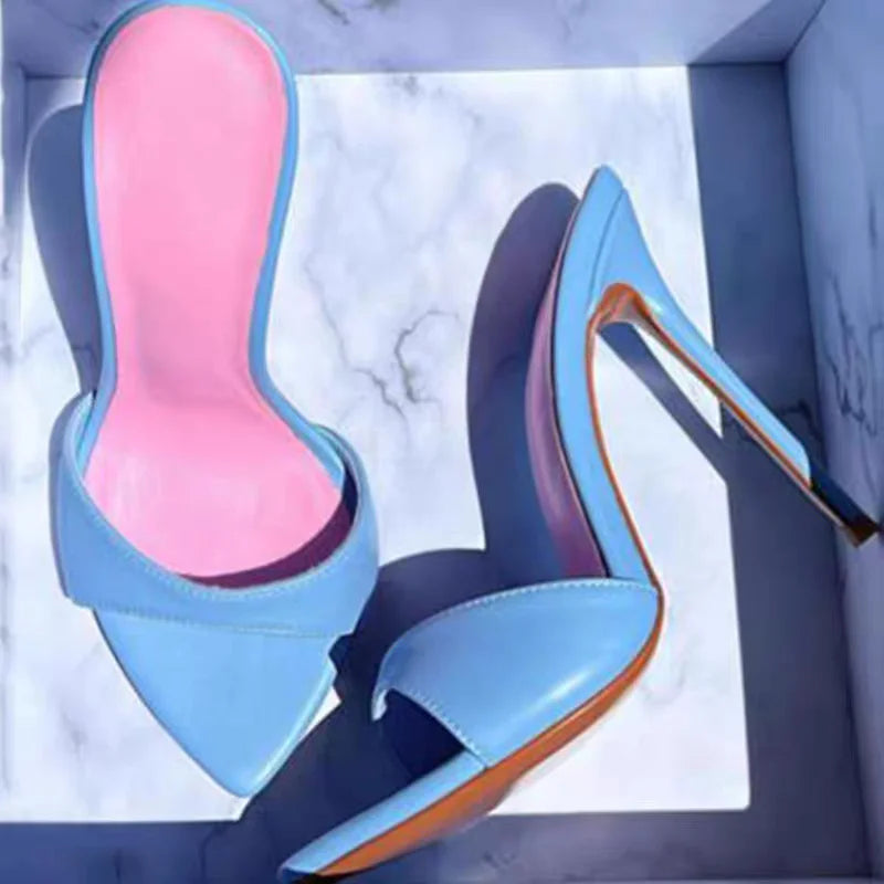 Sexy matte women's slippers pointed toe 12cm high heels slip on outdoor sexy party shoes